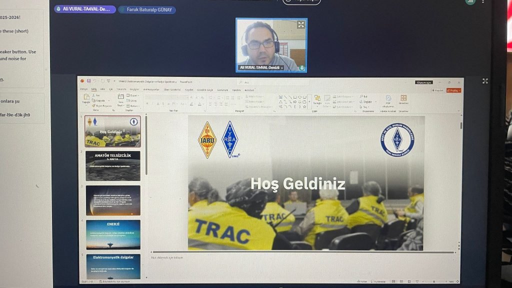 Erzurum Atatürk Üniversitesi ile TRAC Erzurum Şubesi iş birliğinde yürütülen “Amatör Telsizcilik” seçmeli dersinin 7. haftasında, “Elektromanyetik Dalgalar ve Radyo Spektrumu” başlıklı eğitim, 17 Nisan 2026 tarihinde gerçekleştirilmiştir. Söz konusu derse, TRAC Denizli Şubesi adına Şube Sekreterimiz Ali VURAL (TA4VAL) katılım sağlamış ve amatör telsizciliğin temel konularından biri olan bu başlık kapsamında öğrencilere bilgilendirmede bulunulmuştur.
